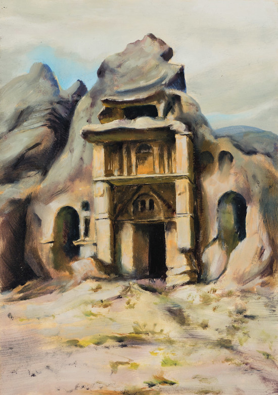 Höhlenwurf 1, 2018, 29,7 × 42, Öl auf Papier